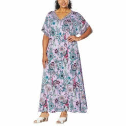 Outlet 😉 Colleen Lopez Collection Colleen Lopez Printed V-Neck Maxi 👗 Dress Cream Boho Floral ⌛