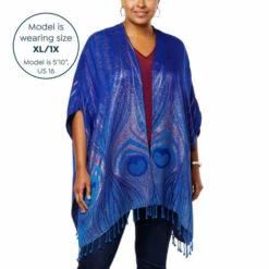 Deals ✨ Colleen Lopez Collection Colleen Lopez Reversible Ruana With Fringe Hem Greek Border ⌛