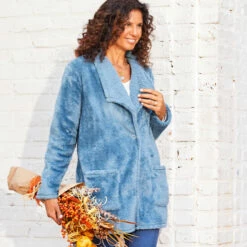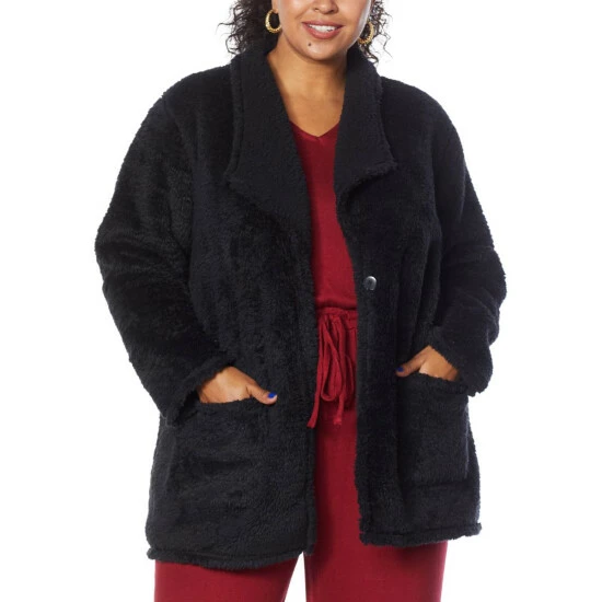 Like your favorite fuzzy teddy bear from childhood, you’ll want to snuggle into this warm, brushed fleece (a.k.a. teddy bear knit) hybrid coat/cardigan topper. It’ll feel like the comfort of home … anywhere you wear it.