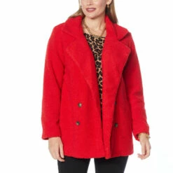 Colleen Lopez Double-Breasted Faux Sherpa Coat