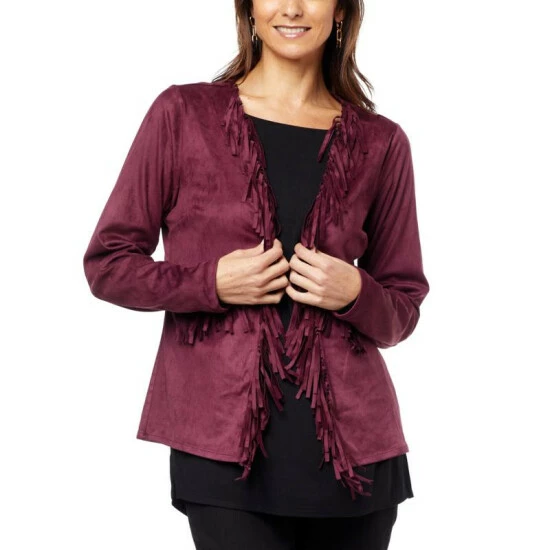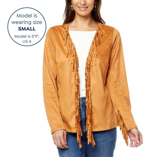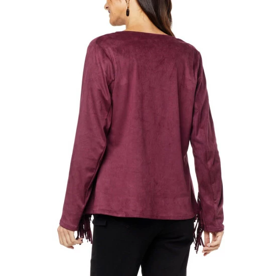 Transform anyensemble by adding thisfaux suede fringetopperas the finishing touch. Enhance the look ofa simple tank dress or jeans and a tee.