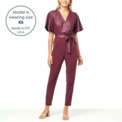 Flash Sale ๐ŸŽ Colleen Lopez Collection “As Is” Colleen Lopez Flutter-Sleeve Mixed Media Jumpsuit Wine ๐Ÿ’ฏ