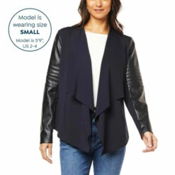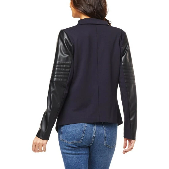 | Sleeves: | Faux leather, long sleeves with moto-style stitching |