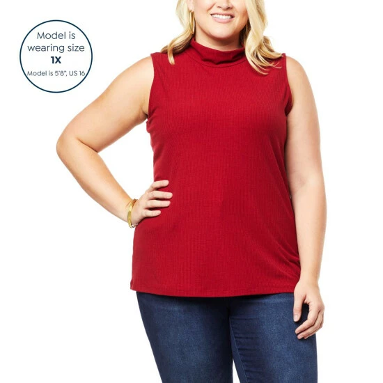 Stock up on comfy layeringbasics with this oh-so-soft,ribbed knit, mock-neck tank from Colleen Lopez.