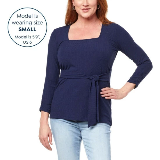 Add elegant flair to your wardrobe when pulling on this cozy-chic square neck top.