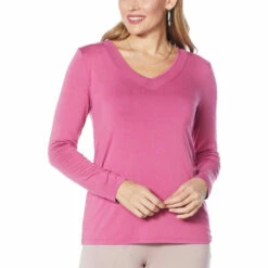 Stock up on comfy layeringbasics with this not-so-basic, long-sleeve top from Colleen Lopez. Amesh inset around the neckline adds just enough style to go from workday to weekend with ease.