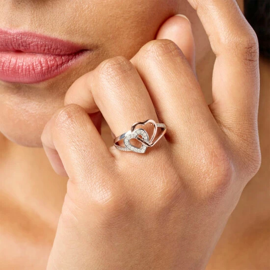 Colleen Lopez 1/6ctw Diamond Interlocking Heart 2-Tone Ring