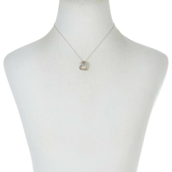 This beautiful two-tone heart pendant twinkles with genuine diamonds. It’s a timeless piece and the perfect gift for a special occasion.