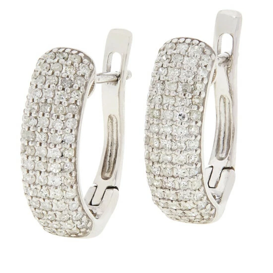 Colleen Lopez.59ctw Diamond Sterling Silver Leverback Hoop Earrings