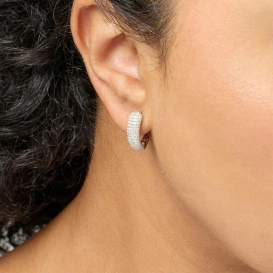 Elegant pavรฉ diamonds trace these leverbacks hoops, a timeless pair you’ll cherish for years to come.