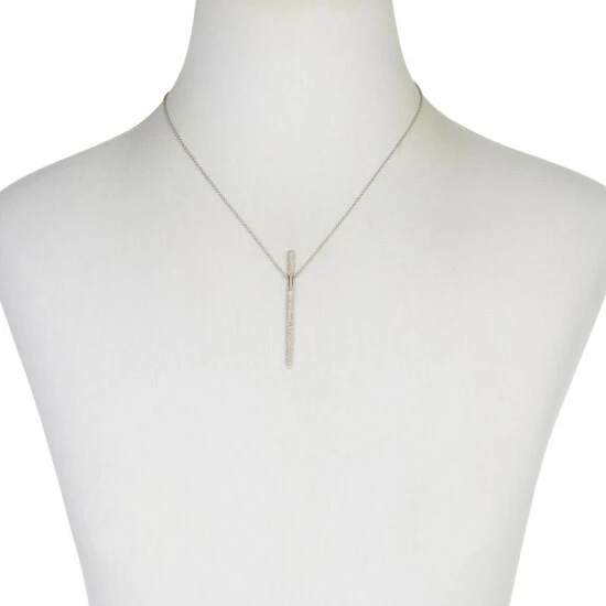 Colleen Lopez .62ctw PavΓ© Diamond Sterling Silver Bar Pendant w/Chain