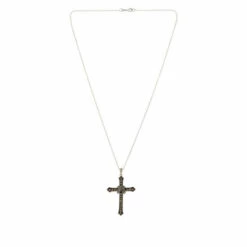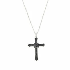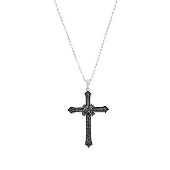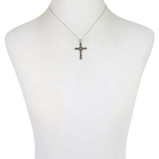 A classic symbol of faith and devotion, this elegant cross pendant shines with fancy diamonds.