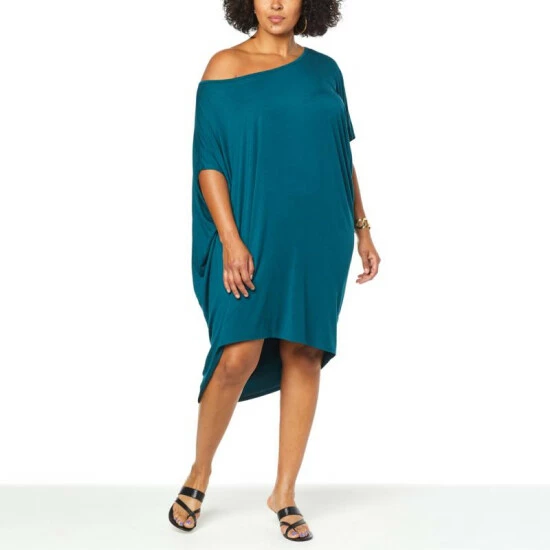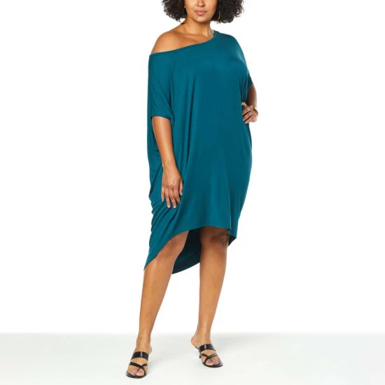 Effortless dressing is at its cutest with this attention-getting, off-the-shoulderdress from Colleen Lopez. Theasymmetric cut pulls in the silhouette to lightly hug your curves in all the right places, while drapingloosely in others … because even on your most casual days, you deserve to look your best!