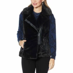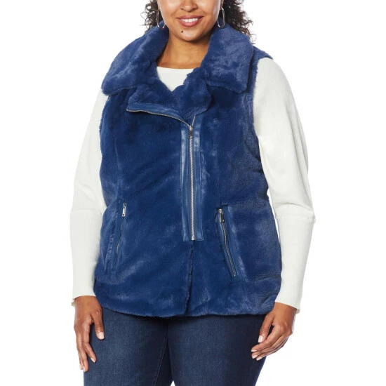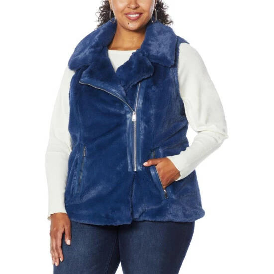 Colleen LopezAsymmetric Zip-Front Faux Fur Vest