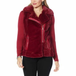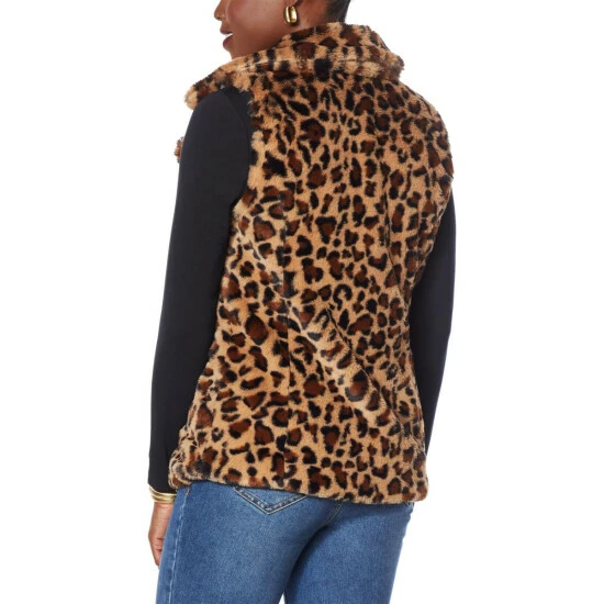 Perfectly paired with a turtleneck or tee, thisflattering faux fur vest makes a statement without saying a word.
