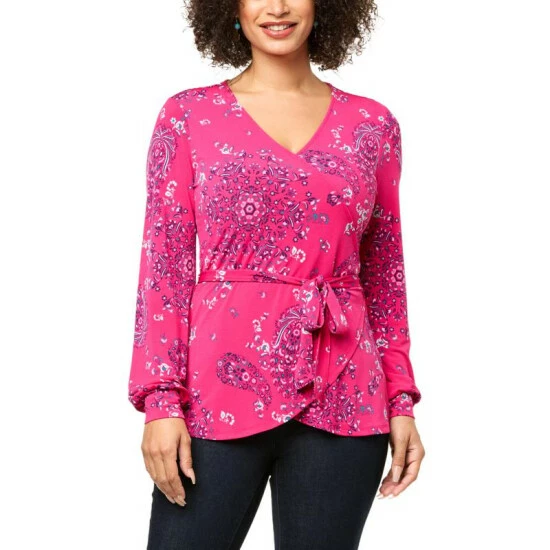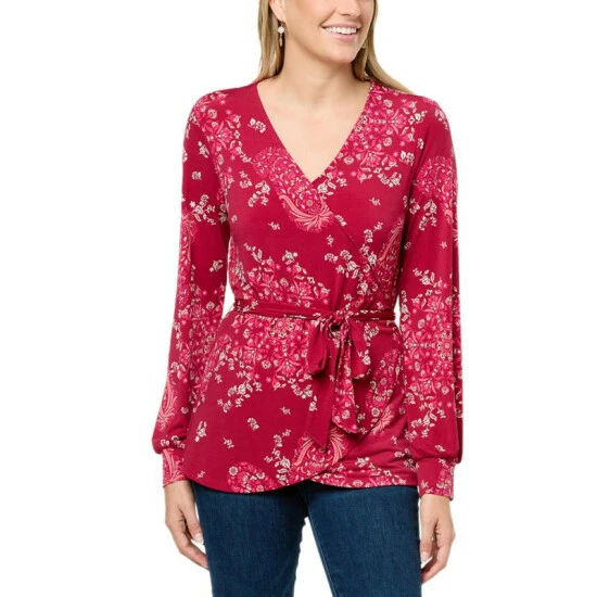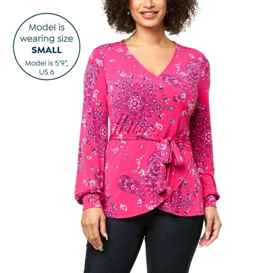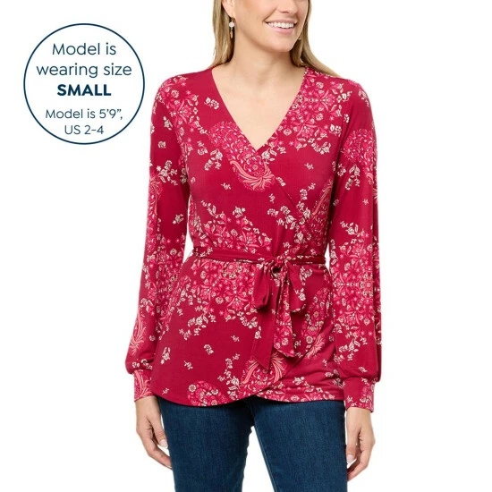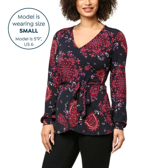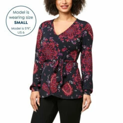 For a polished look every time, thisflatteringwrap blouse is simply divine.