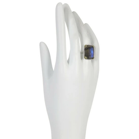 Bold yet sophisticated, this ring stuns with its wow-worthy combo of lustrous labradorite and vibrant green diamonds.