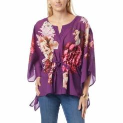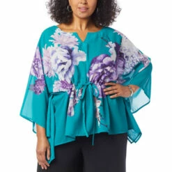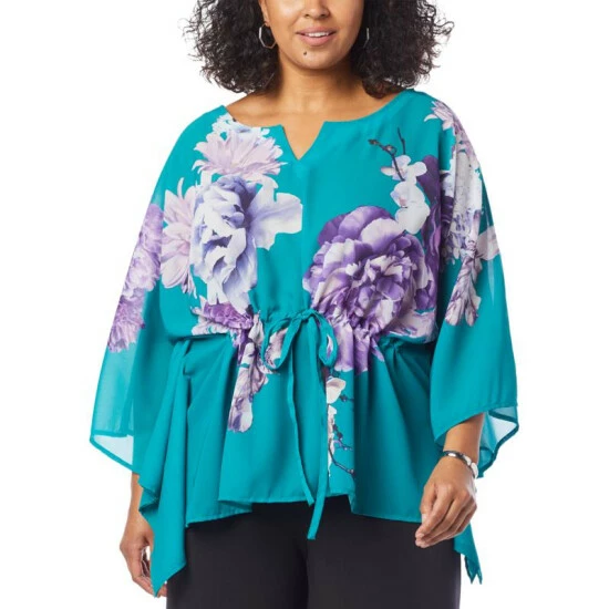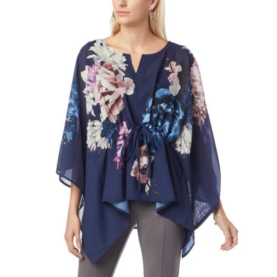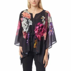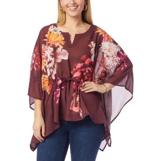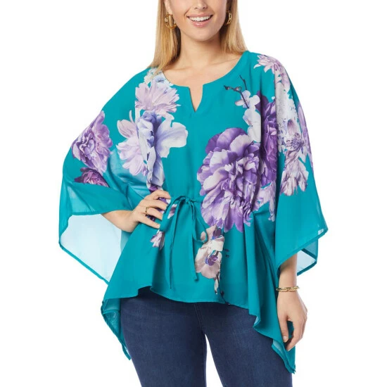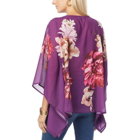 Floral and fashionable, this chiffon-knit poncho adds some springtime fun to your wardrobe. Throw it on over any ensemble for added warmth and stunning style.