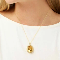 Shine bright with this gold-plated statement pendant, featuring warm citrine and sparkly zircon.
