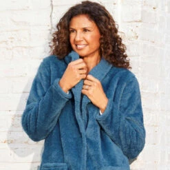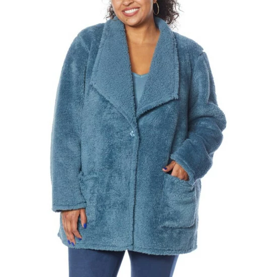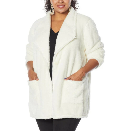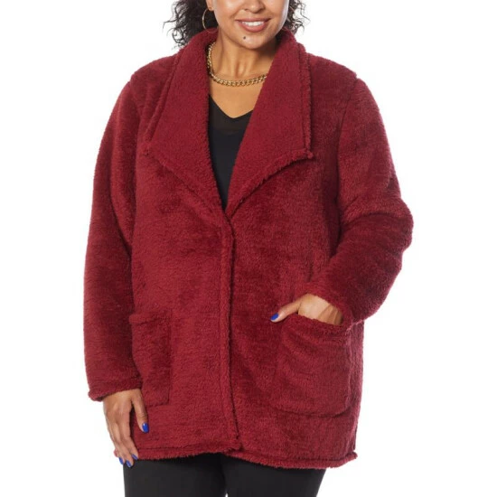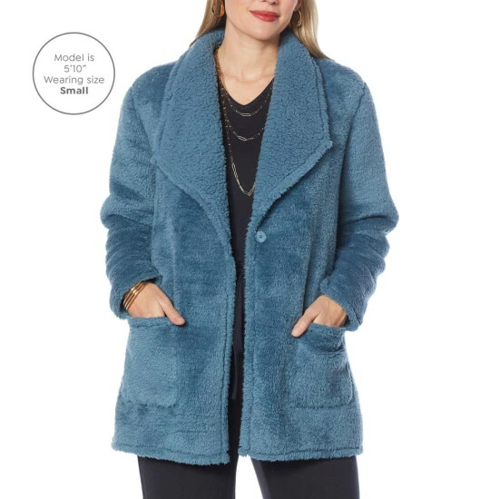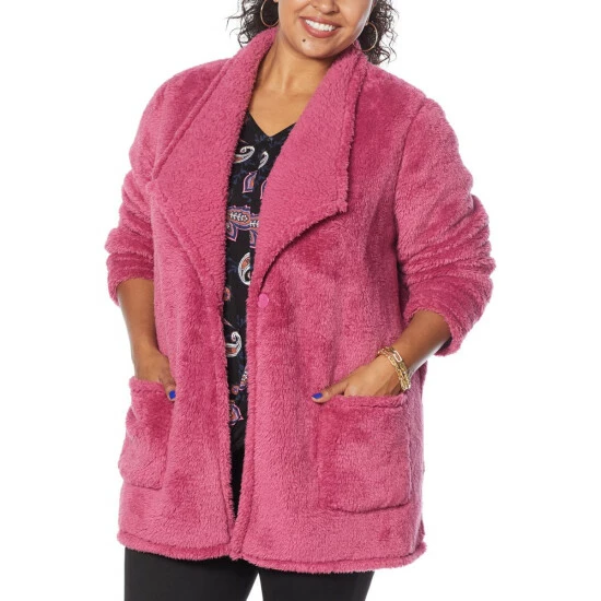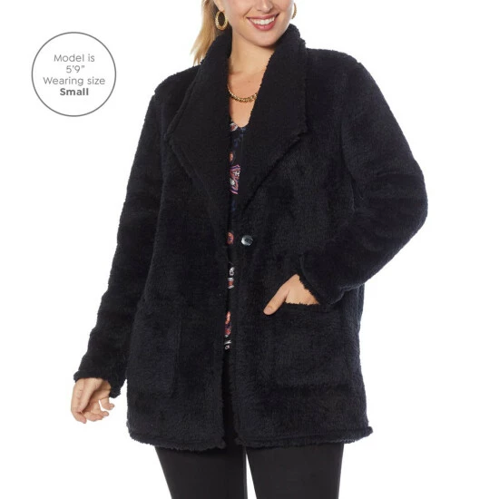 Like your favorite fuzzy teddy bear from childhood, you’ll want to snuggle into this warm, brushed fleece (a.k.a. teddy bear knit) hybrid coat/cardigan topper. It’ll feel like the comfort of home … anywhere you wear it.