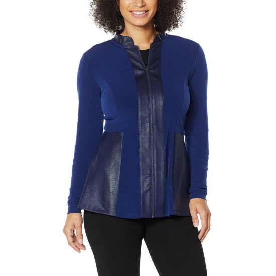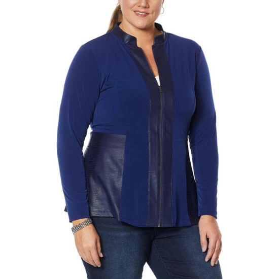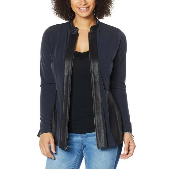 Thiszip-front jacket with coated detailis fashionable, figure-flattering and sets you apart from the rest.