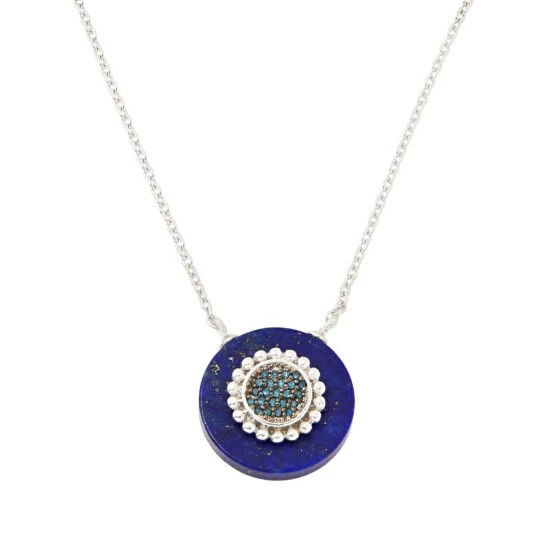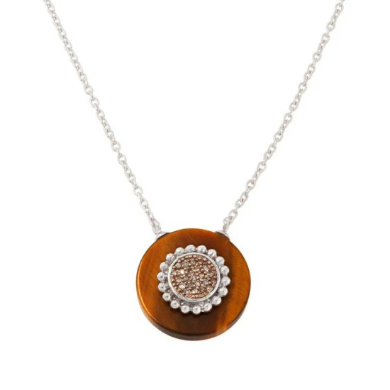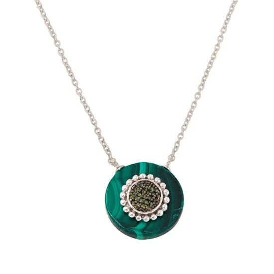 Bold yet chic, this necklace features a disc-shaped opaque gemstone paired with color-coordinated fancy diamonds.