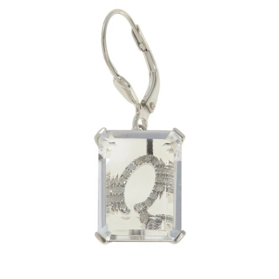Express yourself with this chic diamond initial that sparkles against octagonal-cut clear quartz.