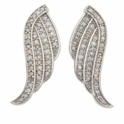 Let your style soar with these sterling silver angel wing earrings that glitter with pavé diamonds.