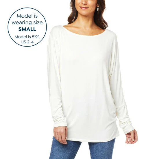 Stock up on comfy layeringbasics with this not-so-basic, tunic from Colleen Lopez.Thedrop-shoulder detailadds just enough style to go from workday to weekend with ease.