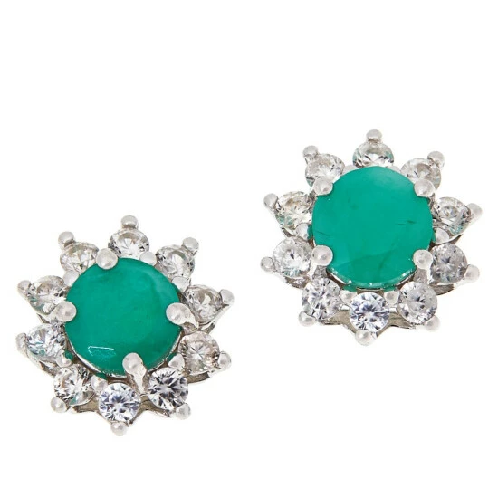 Featuring vibrant emerald centered in a heavenly, starburst-like white zircon halo, these dainty studs deliver big-time style.