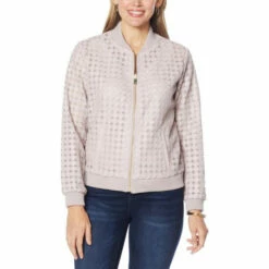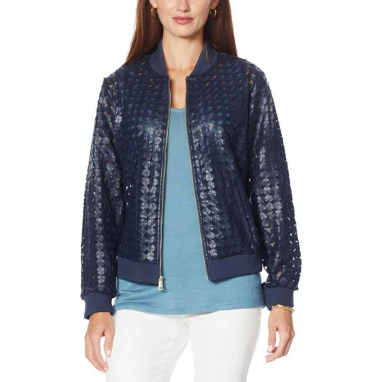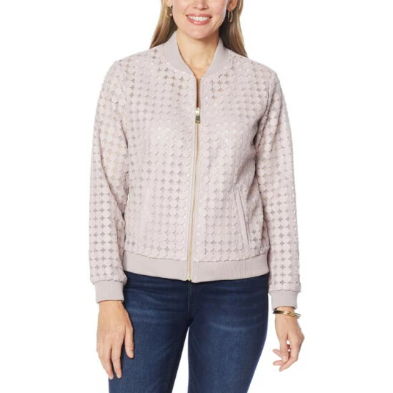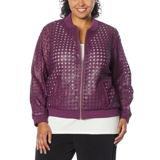 Colleen Lopez Faux Leather and Mesh Bomber Jacket