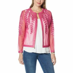 Colleen Lopez Faux Leather Leaf and Mesh Jacket
