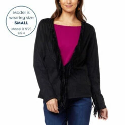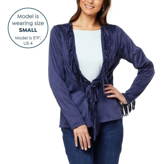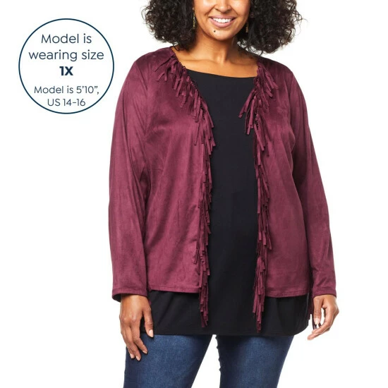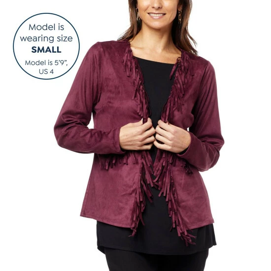 Transform anyensemble by adding thisfaux suede fringetopperas the finishing touch. Enhance the look ofa simple tank dress or jeans and a tee.