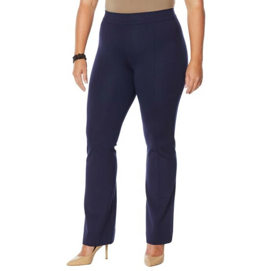 When it comes to a flattering fit, comfort and versatility, this easy-to-wear ponte pant is everything. The power mesh inner panel complements women of all shapes and sizes for sophisticated year-round style.