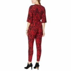 Make a lasting impression wherever you go when wearing thiscrossover belted jumpsuit. It’s a flattering one-and-done, classic look that’s perfect for any occasion.