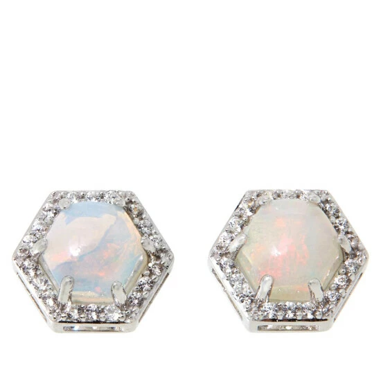 Chic with a modern edge, these studs feature hexagon-shaped opals surrounded by white zircon for extra sparkle.
