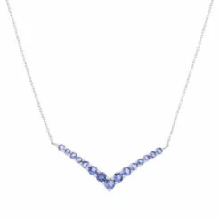 A total of 15 graduating gemstones form this chevron necklace, a chic, contemporary design that’s sure to be an everyday favorite.