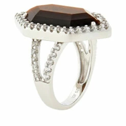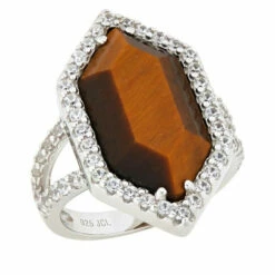 Trimmed by sparkling zircon, this geometric gemstone ring is a unique pick for everyday accessorizing.