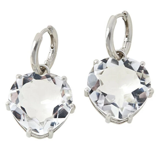 The classic huggie hoop gets a charming upgrade with the addition of a heart-shaped gemstone dangle.