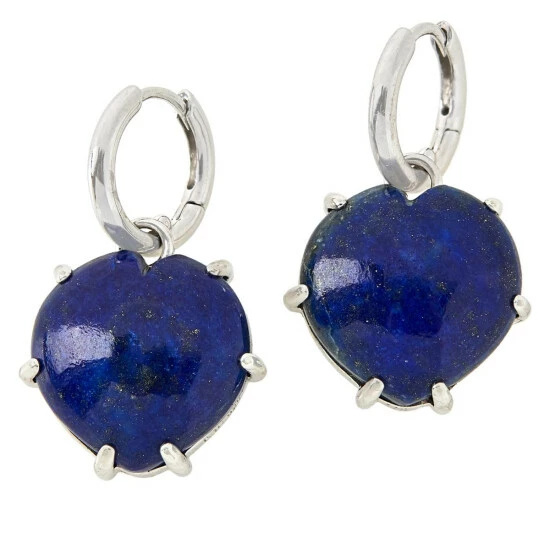 Colleen Lopez Huggie Hoop Earrings with Gemstone Heart Charm