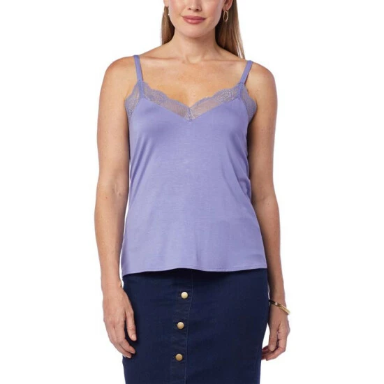 Colleen Lopez Jersey Knit Cami with Lace Trim