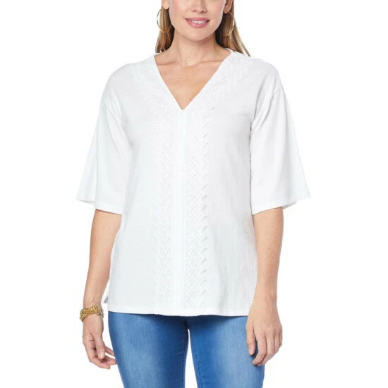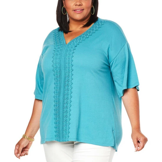 For sophisticated summer style you can wear year-round, this versatiletie-front tunic with lace trimis the perfect complement to many of your Colleen Lopez favorites and more.