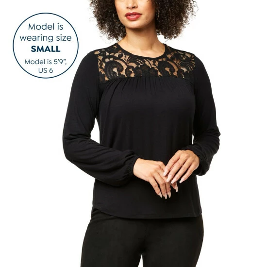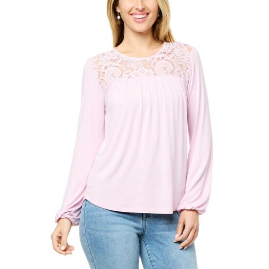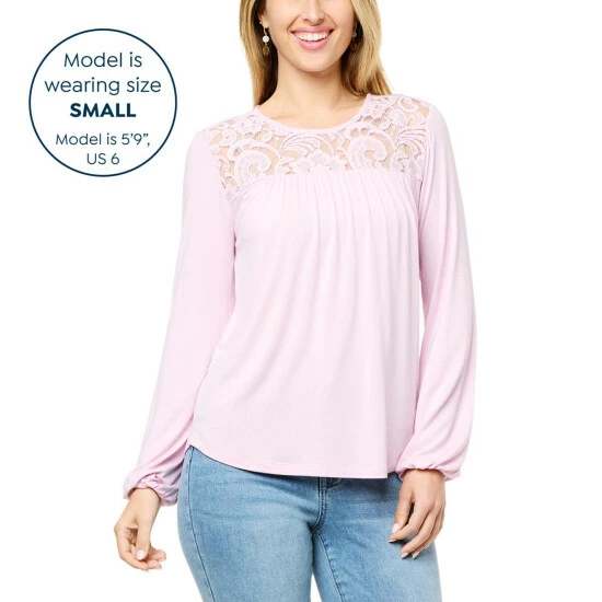For sophisticated summer style you can wear year-round, this versatileballoon-sleeved top with laceinset detailis the perfect complement to many of your Colleen Lopez favorites and more.