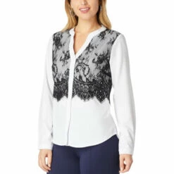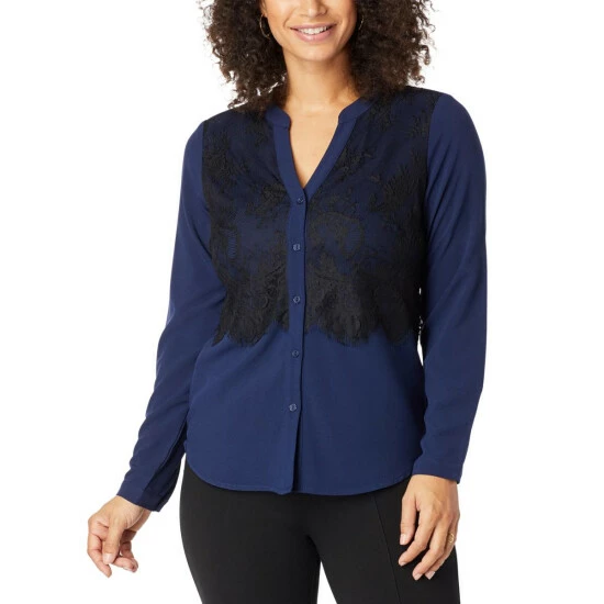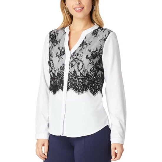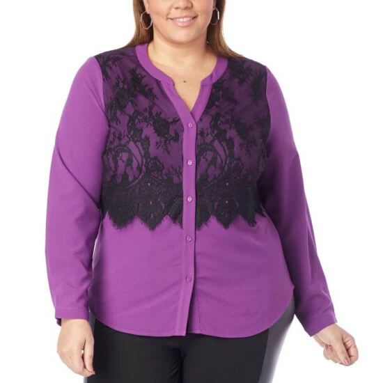 Looking for an elegantblouse that goes the versatility distance? Find it here in this lace detail button-down blouse.It’s the perfect complement to your favorite bottoms.