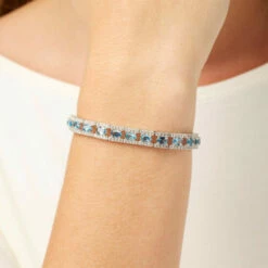 A classic line bracelet with a twist. London Blue Topaz are spaced out along its length for an attention-grabbing look, framed by pavรฉ zircon for added shimmer.