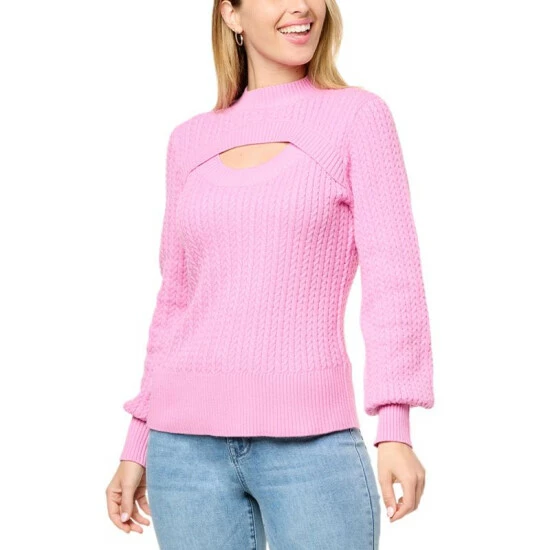 Colleen Lopez Mock-Neck Sweater with Cutout Detail