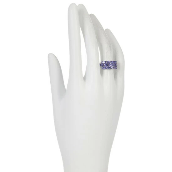 With rows of sparkling tanzanite, this sterling silver ring gives you a fuss-free stacked look.