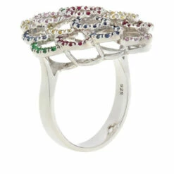 This chic, multi-circle ring makes a colorful splash with its assortment of vibrant gemstones.