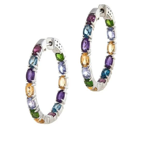 These sterling silver hoops make a colorful splash with their assortment of vibrant gemstones.