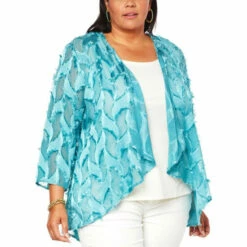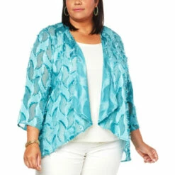 This lightweightdrape-front topper is the perfect complement to your sleeveless garments, adding just-right coverage.